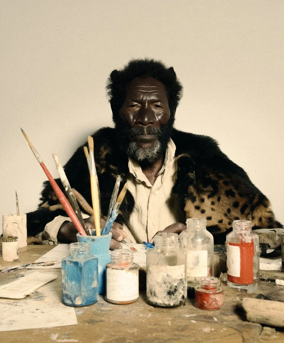 Leopold’s dream paintings thus inhabit a paradox: hyperlocal yet universal, naïve yet strategically resistant, primitive only in the sense of originary. They carry within them the same tension that animates Gauguin’s mythopoetic Tahiti, Basquiat’s ecstatic palimpsests, and Kentridge’s animated allegories of South African rupture. Yet unlike these figures, Leopold collapses symbol into ritual, dream into discipline. His leopard does not stand for anything. It arrives. Always it arrives. And in this endless arrival lies the untranslatable essence of his work.