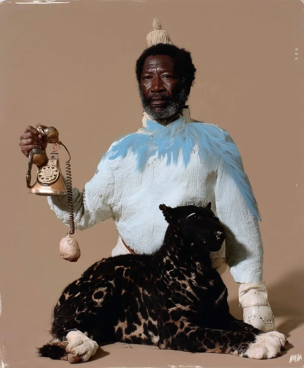In the art world, Leopold’s work has become over-determined, absorbed into a hermeneutic machine that insists upon allegory. Critics perceive the leopard as colonial trauma, the horse as the ambivalent vector of modernity, the father as patriarchal rupture, the son as fractured subjectivity. His canvases have been placed in discursive dialogue with Kara Walker’s silhouettes, with Adrian Piper’s strategies of self-reflexive repetition, even with Richter’s blurred historiographies. For these audiences, the dream is never simply a dream but an allegorical cipher, a code to be unpacked within the lexicon of postcolonial critique and psychoanalytic archetype.